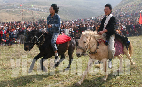 终于到了大方火把节的主会场——大方凤山乡牧场,好家伙,这火把场选得真不错,很大,而且像阶梯般,一层一层下去,还大致分了区,民间体育竞赛区(斗牛、赛马等),生活区(临时食堂、厕所),文娱表演区,篝火区。即便这样,现场已经是人山人海,文娱区在进行最后的彩排,食堂的厨师们更是忙个不停,文娱区路边,各种服务一应俱全:移动公司的,医疗点,烤羊肉的,烙锅摊,羊肉米线,居然还有卖DVD光盘的,只有你想不到的,没有你看不到的。可惜到现场来参加火把节的彝人,穿彝族衣服的极少极少,听大方的朋友讲,这里的彝人很多都不穿彝族衣服了,这虽然跟彝族服饰没有跟上时代的发展有关,但彝族服饰文化的流失,也是不可忽视的,一个彝族最重要的节日,在外观上最具标志性的东西都没有,这不能不说是一种缺憾。而且彝族的服饰,一年365天,每天穿一种,都不会重复,这更是在火把节穿上彝族服饰很重要的理由之一。如果在现场支一个摊卖彝族衣服,生意一定不错,贵州日报的陈祖雨就一直兴奋的向我打听如何买到凉山的彝族衣服。