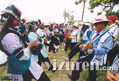 撒尼,是彝族的一个支系,简称“尼”,是快乐的意思。只要你走进,举手抬足都能感受着她的含义。这一天,彝人们穿上平时舍不得穿的节日盛装,拿出平时舍不得抽的上好烟丝,成群结队从四面八方赶来石林。先不说场内,场外早就歌舞升平,热闹非凡。“三弦一响,脚板就庠”,彝族撒尼人能歌善舞,全都是自发的,无须再多语言,这边,一群老人,随着音乐左右摇晃,看似漫不经心,节奏感强但稍慢,这是小三弦!那边,一群年轻人,节奏快伴随着哨音,忽儿转圈忽儿跺脚忽儿发出兴奋的吼叫,这是大三弦!这边,是舞狮,那边是大鼓舞……真正让你感受到“歌舞之乡”的无穷魅力。累了,树下小憩,吹吹水烟筒,饿了,到彝族撒尼的“汤锅宴”大快朵颐,喝上几口玉米酒,一副神仙的日子,好不逍遥自在!