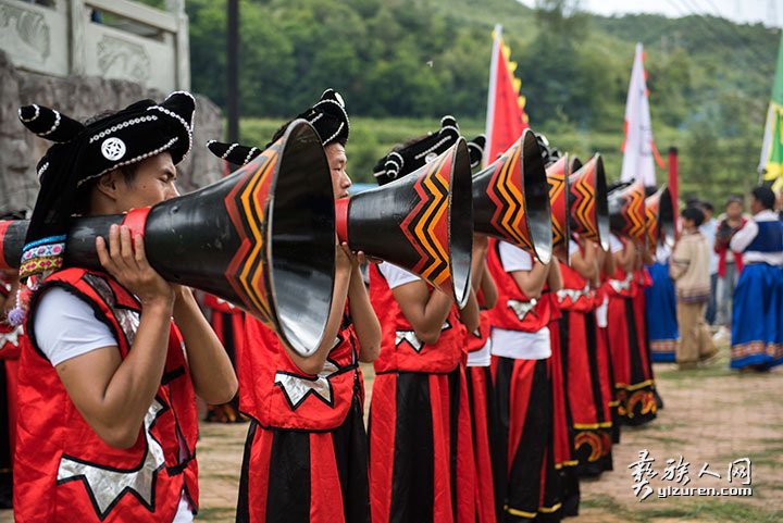Lk9彝族人网(彝人网)- 彝族文化网络博物馆 识碑落成仪式上的长号阵列