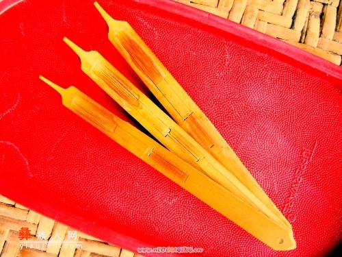 三片竹口弦,目前很少人去演奏这样古老的口弦。因为它容易受天气的影响,发不出音或容易走音,而它本身的音色也比双片或单片的竹口弦短促,死板。