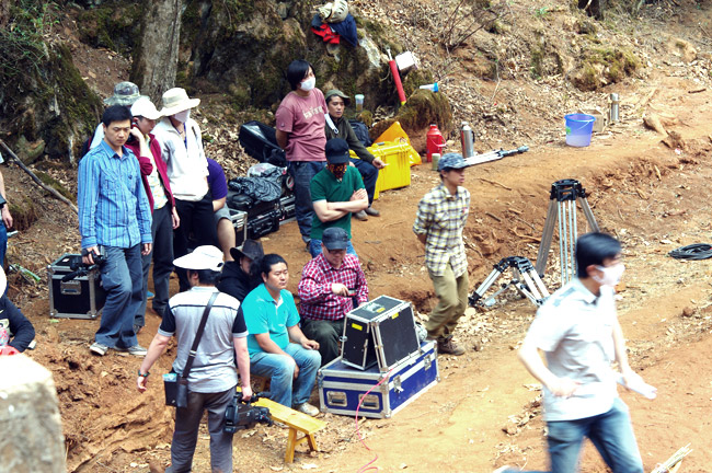 剧组在当天下午,就开始了正式拍摄。剧组成员多数来自导演杨万在北影学习时组织的团队,使用阿莱电影摄像机,摄影由隋国才掌镜。第二场的镜头在一个山洞里面拍摄,洞外一会下小雨,一会出太阳。洞内寒气逼人,但剧组成员依然坚守岗位,做好自己的工作,导演杨万穿上了传统的彝族服装,不时跟副导演沟通,跟主角秋风讲戏,似乎浑然不觉寒冷。晚上9时,剧组还在洞内工作,由于当天要返回四川,和导演杨万,“支格阿鲁”秋风告别,心里默默祝愿《支格阿鲁》拍摄顺利,下了山。