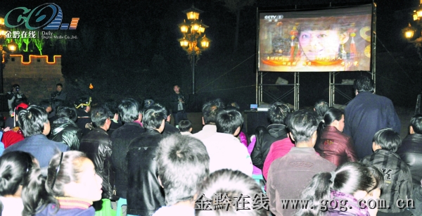 大方县各族干部群众在宣慰府广场收看《奢香夫人》