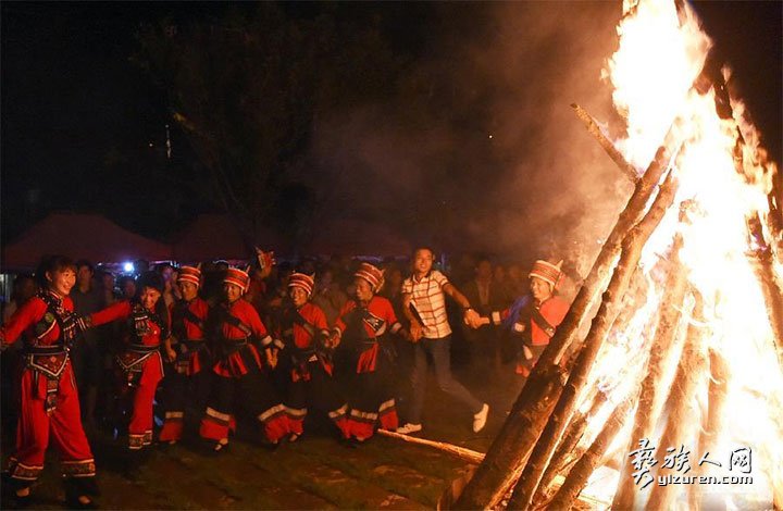 火把游行结束后,在县民族文化广场跳民族团结舞,掀起火把狂欢夜“篝火晚会”。