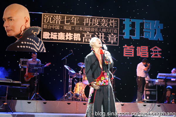 4月8日晚, “歌坛轰炸机”高洪章《打歌》个人首唱会在昆明剧院开唱,这是南涧县第一位歌手在昆明举行个人专场演唱会。许多高洪章家乡的亲朋好友、歌迷都纷纷奔赴昆明,感受高洪章为观众奉献的这场民族与时尚结合的完美音乐盛宴。这次演唱会,高洪章带来了与以往纯民族音乐原生演绎震撼不一样的演出感觉,整个舞台非常简洁时尚,他个人及乐队的演出表现出世界音乐的范儿。沉潜七年,高洪章找到了与世界音乐更接近的感觉,包括作曲、音乐制作、演唱风格、舞台表现,都已经不在是一个纯彝族歌手的原生态感觉,而是在往专业歌手的道路上走,在探索民族音乐的更多可能性。