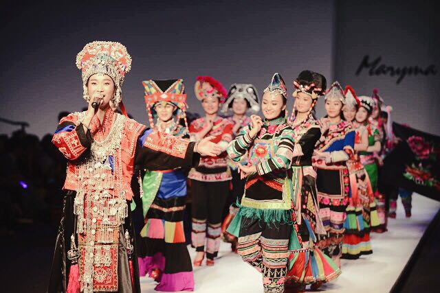 “这是我第一次来到楚雄州直击盛大壮观的民族服装盛会。只是一眼,我就知道这里有我一直在找寻的东西,我注定会与它产生交集。”受邀亲历了永仁直苴赛装节的盛况后,国际名模、著名服装设计师马艳丽被彝绣之美深深吸引,当即便表示:“一定要做点什么才行!必须让更多的人了解这藏在深山里的‘高级定制’!”说到做到,8个月后,她就带来了50套以彝绣元素为主题的高级定制时装。
