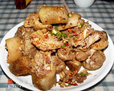 吃着这味美的坨坨肉,我不禁向蓄着天菩萨的阿牛打听它的做法。阿牛抹了抹流出嘴角的油舀了一勺酸菜汤喝,不快不慢地说:“坨坨肉的做法并不复杂。先将一头三四十斤重的小猪儿宰杀,放在有柴火的火塘上烧,边烧边用小刀或木片刮毛,然后小火细细地烤,直到猪皮变成米黄色才停止。再去肠去肚,冲洗干净,砍成大坨大坨的,先用大火煮,后小火煮。大约半小时后,待肉刚一过火,就立即捞起,沥干水分,和上适量的盐、海椒、花椒、木姜子粉等佐料,便做成了彝家风味独特的坨坨肉。”