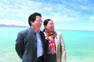马新明、孙伶伶夫妇在西藏“天湖”纳木错畔合影