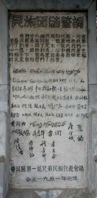 民族团结誓词碑文第一个签名为老傣文“召景哈”