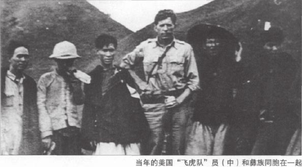 原来,B-29战机飞临雷波上空时,由于雾大迷航,飞机在大山中兜起圈子,在燃料即将燃尽之际,11名机组人员只得跳伞自救。美国飞行员的衣服背面,事先缝上了一个布条,上面盖着国民政府的大印,写有“来华助战洋人,军民一律保护”的字样。虽然飞机坠毁了,但11名机组人员安然无恙。当一群高鼻子蓝眼睛的人从天而降出现在小山村时,彝民们吓了一大跳。经过一阵“叽里呱啦”的交谈后,尽管双方都没有听懂对方的话,但彝民还是把飞行员送到安登文的家。