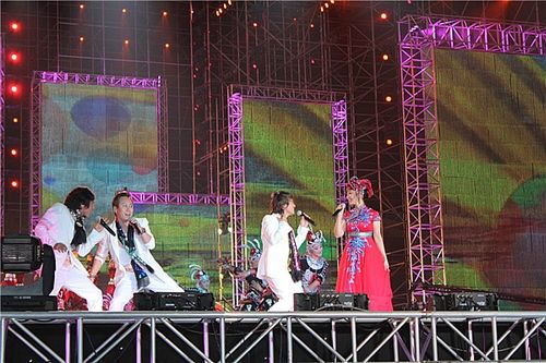 23日晚,云山国际旅游节开幕式文艺晚会在河南焦作举行,八点三十分随着绚丽缤纷的礼花声晚会拉开帷幕,演出阵容强大,蒋大为、殷秀梅、曲比阿乌、彝人制造、吉祥三宝等少数民族演员一展歌喉,陈慧琳、阿牛、俄罗斯“海豚音王子”维塔斯等一批知名演员登台献唱。此次彝人制造与曲比阿乌演唱了他们共同合作的新歌《幸福的歌儿献给你》,欢快的歌曲把晚会推向高潮。