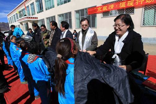 2011年11月21日,在林周县阿朗乡中心小学举行了“京藏情•温暖行动”捐赠启动仪式。未名基金发起人之一、北京援藏干部马新明、孙伶伶夫妇及拉萨市、林周县驻村干部等10余人参加了捐赠仪式。ihB彝族人网(彝人网)- 彝族文化网络博物馆