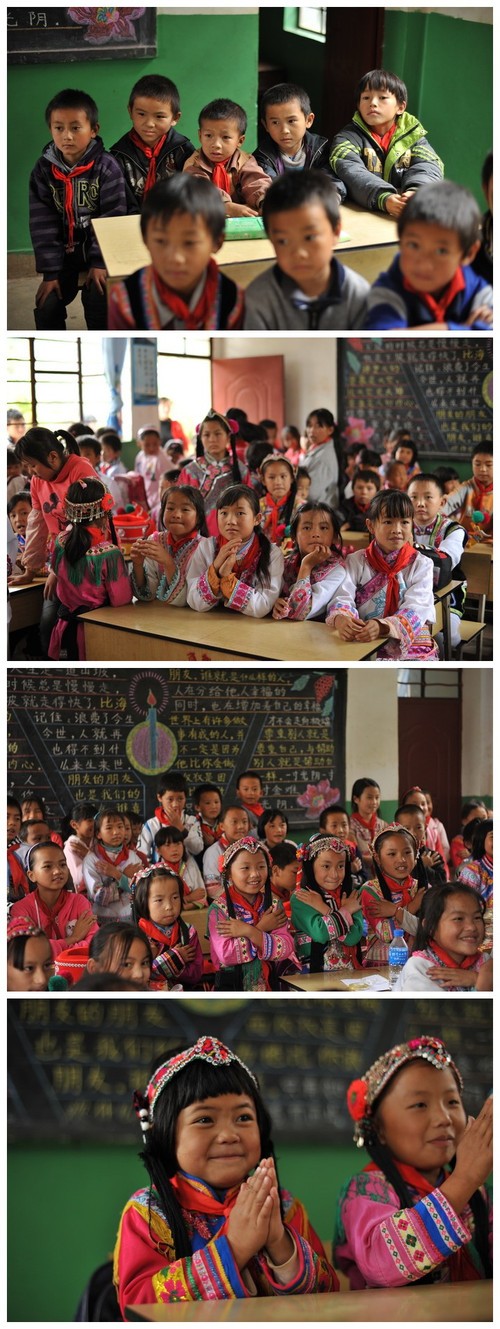 古柏小学的学生纯朴可爱,很有礼貌,遇到每一个志愿者、工作人员或同行的音乐老师,都会停下脚步,认真地举起右手,给你行一个少先队队礼,即便步速再匆忙再急,他们也会“唰”地停下,纪律好得让你彷如身在军营中。可见即使深在山里,他们的道德教学一样跟上步伐,没有落后。当天,志愿者们给合唱团的孩子们及小学里的部分学生认真讲解了简单的乐理常识,还教会他们共同唱《幸福拍手歌》。孩子们的脸上洋溢着幸福与欢乐。24日,在古柏小学的大操场上办起了一个小型的成果展示汇报演出,志愿者们带上各个年级的小同学,表演了三个精彩的节目:积极向上的健康歌,轻松欢快的兔子舞,和生动活泼的彝族神话故事表演。虽不算精致出品,却让全校同学都为之欢腾,为之鼓掌。