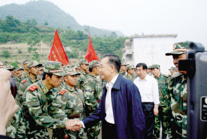 5月16日和5月23日,胡锦涛和温家宝先后接见了支队官兵。