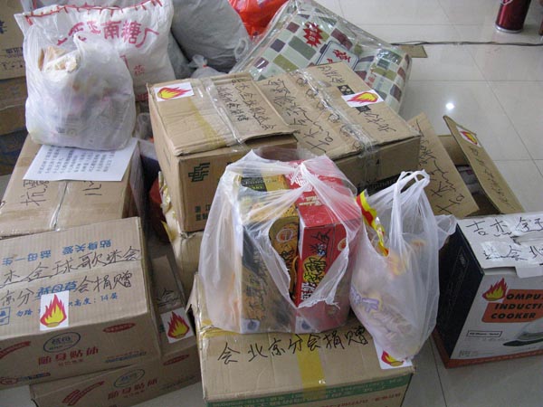 记者看到,“火把”们捐赠的除现金外,还有地震灾区急需的橡胶手套、口罩、卫生用品及饼干、儿童米粉等物。