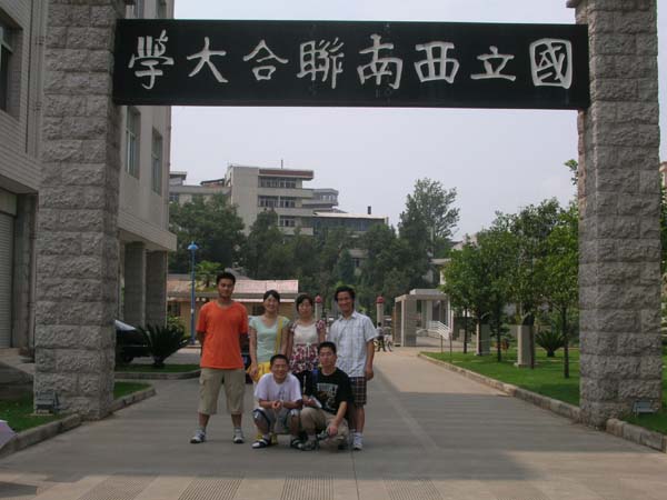 斯人已逝,而今,我们这一队和平年代来自东部沿海高等学府的学子们就站在先人们曾经战斗过的土地上,瞻仰联大古旧朴实的校门。此刻,没有什么比这两根石柱支撑下的简单校门更具震撼力的了。有一个关于麝鹿临崖退麝的故事,说的是麝鹿在猎人追赶至悬崖而走投无路的时候会推出其体内最珍贵的麝香交与大地,然后自己义无反顾的跳下悬崖。我想在此时此刻我是理解麝鹿了的,这些联大的老教授们不正是在做着临崖退麝的事业吗 ?在面临着丧国之耻的历史崖峰时,他们竭尽忠诚,用自己所有的热忱致力于民族大气的捍卫中。最后在历史纷飞的战火中将自己的一腔衷肠,一腔热血掩埋于祖国的大地中,留下的是不朽的伟业等待后人前来仰望。