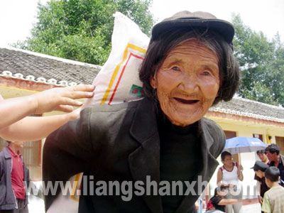 此次救助对象是该乡的21名孤儿、51名单亲孤儿和领养他们的家庭。40户贫困家庭领到了大米和食用油。“有粮食能过好今年的火把节了”,被救助的俄木小龙的奶奶望着中心的志愿者们激动地喃喃:“你们真是大好人,卡沙沙,卡沙沙!”。
