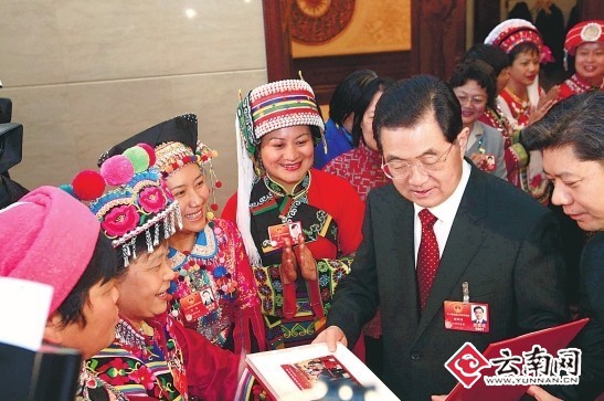 2012年3月7日,中共中央总书记、国家主席、中央军委主席胡锦涛参加十一届全国人大五次会议云南代表团会议。