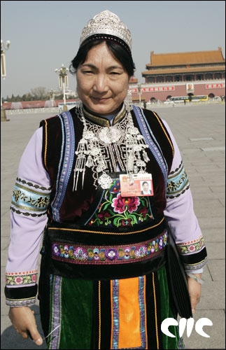 2010年3月,不满26岁的四川省凉山彝族自治州张蓓蓓代表,来自凉山彝族歌舞团的张蓓蓓,一亮相即成为关注的焦点。