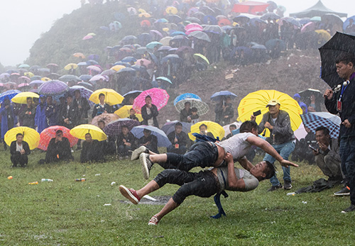 雨中摔跤(2019年7月22日布拖县衣某片区火把场)江宏景摄
