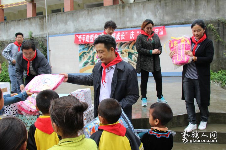 2016年5月26日,正值“六一”国际儿童节到来之际,马边彝族自治县委常委、县总工会主席陈东率县总工会、县妇联等部门负责人,冒着毛毛细雨,深入高卓营乡稀泥沟村小开展“牵手助脱贫.爱心伴成长”庆“六一”活动,为该校227名彝族学生送去了总价值8000余元的学习用品、糖果等“六一”礼物,并祝小朋友们节日快乐,天天开心,健康成长,学习进步!
