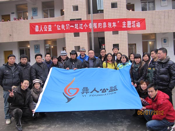 在彝人公益原始基金捐资人秦正刚、奥杰阿格先生的关心、支持下,彝人公益于2011年11月下旬开始发起“让我们一起过一个幸福的彝族年”捐助活动,分别挑选云南省宁蒗彝族自治县烂泥箐乡大二地中关村希望小学、贵州省威宁彝族苗族回族自治县龙街镇朝阳小学、四川省乐山市峨边彝族自治县杨河中心学校、四川省凉山彝族自治州会理县黄柏小学等四所小学为捐助对象,在经过当地志愿者推荐、网络公示等程序后,于2012年1月将捐助的冬衣(裤)、手套、袜子等衣物及篮球、跳绳等文体用品寄到学校发放。