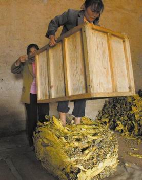 村民将烟叶装箱打包。UlS彝族人网(彝人网)- 彝族文化网络博物馆