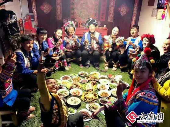 在节目中,重礼节的彝族人民铺松毛、迎宾客,彝家年夜饭敬酒歌不断、火把熊熊、三弦欢快、舞步飞扬,全村男女老少,其乐融融;彝家烹年猪,炖野菌,拌树花,炒羊脚等一系列彝家年夜美食得到充分展示;激烈的磨荡秋、高超的打陀螺等民间体育竞技和深情的拉歌、欢快的左脚舞等彝家儿女欢庆节日的活动淋漓尽致呈现眼前……在红红的火光中,伴着欢声笑语,彝家儿女与广大全国观众喜迎新年到来。