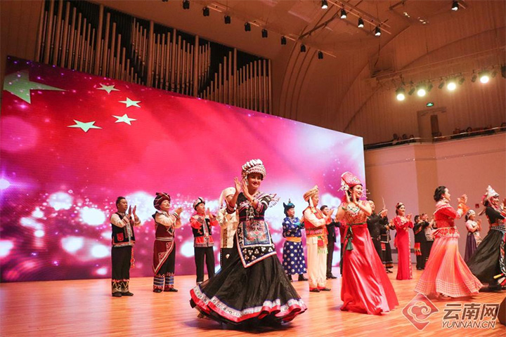 云南网讯(记者 龙彦 赵黎浩)2019年10月10日晚,“礼赞新中国 奋进新时代”2019年国家艺术基金少数民族声乐表演人才培养昆明音乐会在云南省大剧院唱响。35名来自2019年度国家艺术基金“少数民族声乐表演人才”项目的学员汇聚昆明,为云南观众带来了一场丰富多彩的民族音乐盛宴。