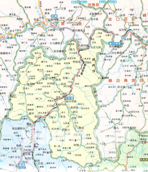 3. July 21-28, hike the route: Wu Si He Railway Station---Fulin Town in Hanyuan County---Dashu Town---Henan village---Shen Guo in Ganluo County---Ping Ba---Yao Chang---Shuang Ma Cao---Tang Jia Wan---Hai Tang Town---Xi Qiao---Zheng Xi---Lao Ka Zi---Qing Shui---La Mei Ying---Xi Fan Zai---Liao Ping---Lao Liao Ye Gou---Bai Sha Gou---Mei Hua Village in Yue Xi County---Bao An Village (Old La Mei Ying)---Ban Qiao Village---Xin Min Town---Da Tun Village---Yue Xi Town in Yue Xi County.