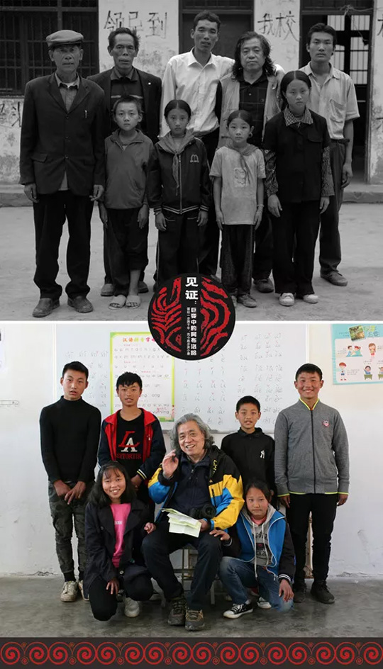2005年10月6日,布拖县乌依乡阿布洛哈村,时为四川省教育厅干部的林强在简陋的村小和师生们的合影。(上图)林强 摄