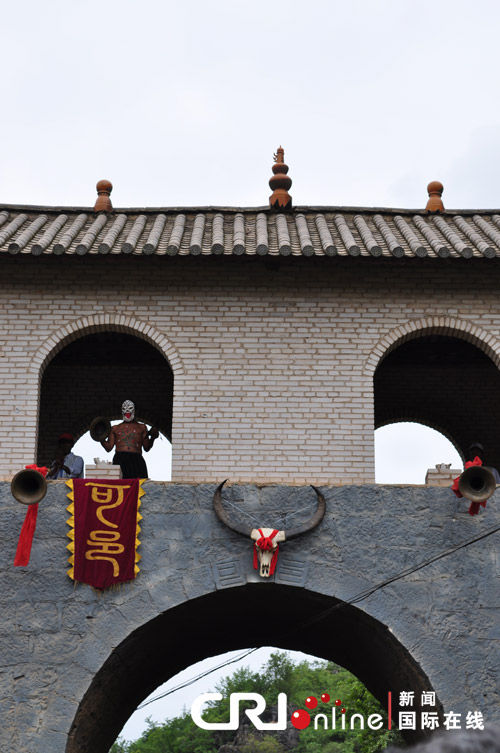 每当有客人来临,热情好客的阿细人都会在山上的烽火台上吹响迎宾的长号。顺着翠绿色松针铺就的芳香“地毯”,游客们来到了可邑村寨门前。寨门由六个文身画面、手持钢叉的阿细小伙子把持着。游客想要进入阿细人的寨门,首先要跨过寨门前的火塘,除去身上的秽气。进入寨门,热情好客的阿细青年载歌载舞地迎接远到而来的客人,美丽的阿细姑娘给客人捧上一杯杯香醇美酒。可邑村原村长陈荣介绍说,阿细人如此隆重的进寨门仪式,是为了表达对宾客的诚恳和热情。
