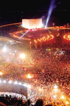 万人攒动举火把 摄影/本报记者 李伟