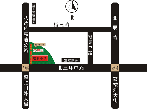 埃蒙小镇位于北三环马甸桥东北角街心公园玫瑰园内,有别与京城其他酒吧!它汇集京城及全国各地的户外高手和户外爱好者。酒吧以户外主题为主,极力推崇自然健康的生活方式,装修和陈设上,处处体现着人文理念。墙上绘制着千年的岩画及抽象画。酒吧里还摆设有佤族的通天神器---木鼓、鸟巢、纺车等原始意味的装饰品和户外装备。不仅如此,在宣扬原生态文化的同时,酒吧很注重现代运动方式的传播,走进这里让您忘记喧嚣的都市,仿佛置身于森林驿站。