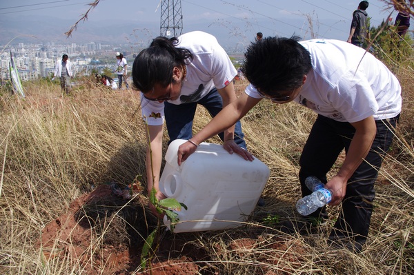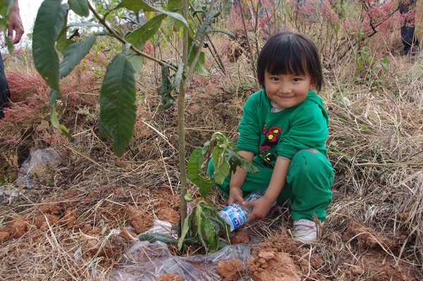 除了MV剧组成员,几位网友也闻讯赶来,有的还带来了小孩参加了植树活动,西昌素食组织的朋友也带着镐、锹、地膜等工具前来了,几十号人,在荒山上种下了核桃、琵琶等树。