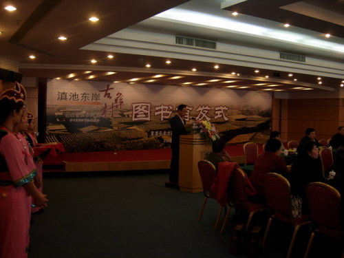 在南高原初冬懒洋洋的暖阳中,有幸和彝学界的几位泰斗级前辈一道在昆明官渡大酒店参加《滇池东岸古彝村》的首发式以及下午的研讨会。数千年来,昆明子君彝族村像一叶飘零的孤舟静静地横卧在烟波浩淼的滇池东岸凤凰山上。凤凰山从东向西,西高东低,像一只带着箭伤刚刚跌落在滇池中的凤凰,两翼还没来得及收回,无奈地挣扎着抬头仰望滇池对岸的西山之颠。在元初,赛典赤·赡思丁开凿滇池出水口以降低滇池水位而得良田万顷之前,凤凰山周围应该是茫茫滇池水,仅有东侧一小部分与岸相连。《史记》载:“昆明子居滇河中”,“子”与“资”同音,彝语意为“君长,首领”,走进子君村,让我依稀看到了古滇国神秘的影子。