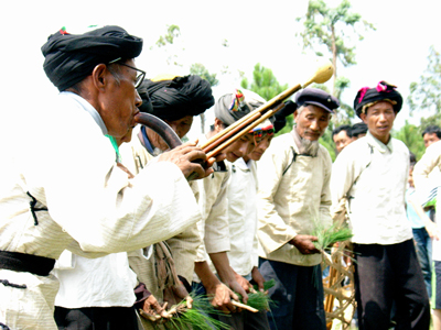 然后他们跳起了集体葫芦笙舞,舞狮嬉戏,扮演小丑,在他们看来,歌舞不仅可以安慰祖先,愉悦神灵,还可以安慰生灵。人神同欢,显示出了人与自然之间最深切的默契。整个活动庄严肃穆而又欢快热烈。这不仅仅是一次盛大庄严的庆典,更是一次自由的狂欢节。对祖先的尊崇,对自然的敬畏,对民族传统的缅怀,对生存的感恩,创造了生命激情的最高潮。