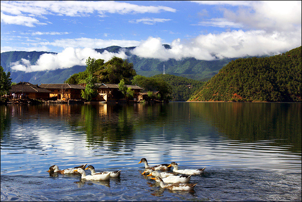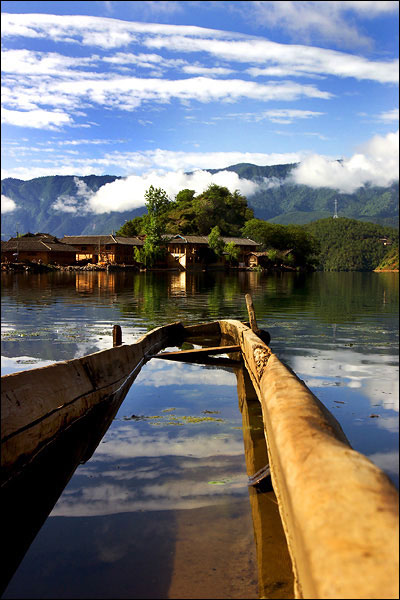 被摩梭人称为“母亲湖”的泸沽湖,是泸沽湖风景名胜自然景观的重要组成部分和背景,素有“高原明珠”之称。湖的水域面积达58平方公里,海拨2690米,平均水深45米,最深处90余米,透明度高达11米。湖中有五个全岛、三个半岛和一个海堤连岛。湖中各岛婷婷玉立,形态各异,林木葱郁,翠绿如画,身临其间,水天一色,清澈如镜,藻花点缀其间,缓缓滑行于碧波之上的猪槽船和徐徐飘浮于水天之间的摩梭民歌,使其更增添几分古朴、几分宁静,是一个远离嚣市,未被污染的处女湖。