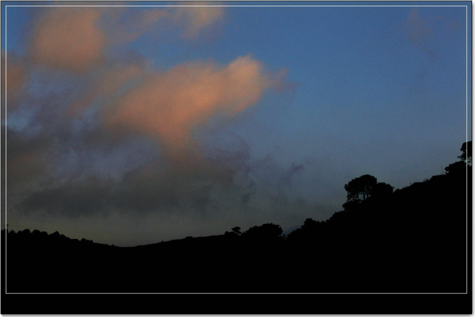 东方的天边愈加明亮起来,而此时的雾霾竟也缓缓升腾起来,依依不舍的向高处移动着,玉带般萦绕山边,青黛的天空渐渐露出了淡淡的鱼白,那些簇拥在山巅的云朵也透出几分玉翠的温润,幻变着迷人的色彩,仿佛舞蹈的仙女妩弄着娇媚的水袖,不经意的滑出飘渺的痕迹。