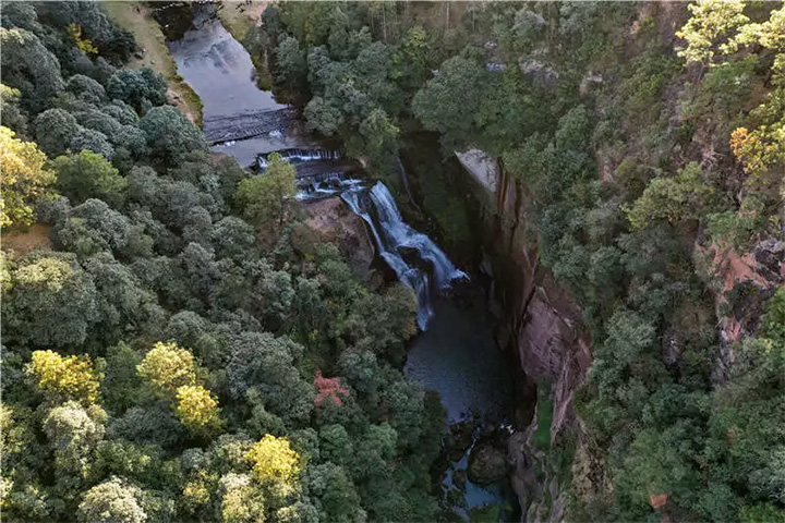 大自然的天工之作,造就了水城河数道不同类型的瀑布,河床两岸巨大奇特的红砂岩与原生植被交融一体,形成亮丽的景观。