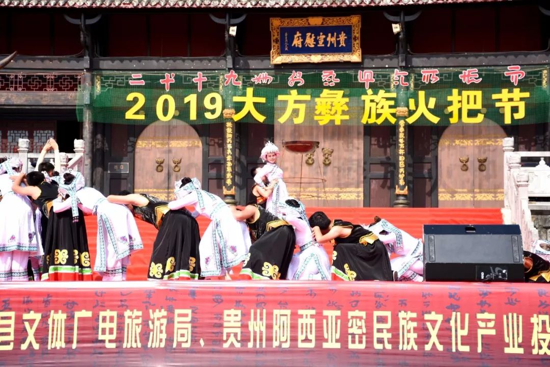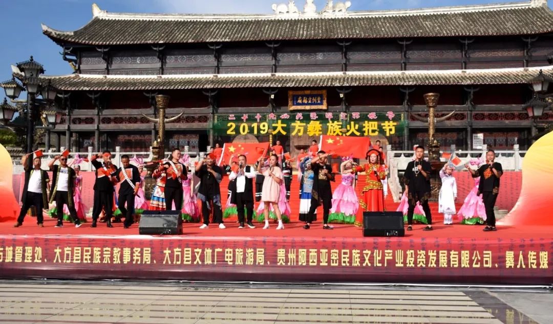 活动期间,举行了探寻中华文明源头暨汉彝易学寻根研讨会、乌蒙欢歌集体舞大赛、文化+旅游产业发展研讨会等系列活动。各族同胞和四方宾客欢聚在一起,参与或观看了火把节祭祀大典、火把游行、喝拦门酒、吃特色长桌宴等传统仪式活动。当天,富有浓郁民族风情的舞蹈《古彝魂》拉开了文艺演出的大幕。歌曲《喊姐姐》《杜鹃花开》《我的大方我的家》,舞蹈《衣角舞》《天佑中华》,大合唱《我和我的祖国》等节目,赢得了观众的阵阵掌声。丰富多彩的舞蹈、歌唱等节目给人们送上了一场彝族文化的视听盛宴。入夜,举行了盛大的火把巡游和篝火晚会,欢乐的气氛和阵阵的笑声把活动推向了高潮。在熊熊火光的映照下,近万名群众相聚在灯火辉煌的贵州宣慰府广场,载歌载舞,共同祝愿祖国的明天更加繁荣昌盛,大方的明天更加美好辉煌。