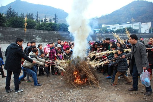 2014年2月9日,天气虽然寒冷。但一大早,峨边彝族自治县城区一群群手持绑着草叶、串着玉米核竹杆或木剑的孩子们在大人的陪同下,兴高采烈地往城郊的河边赶去,不一会儿,位于峨边城郊的白沙河畔便人头攒动了,原来,这天是彝族儿童的节日——“阿依蒙格”。