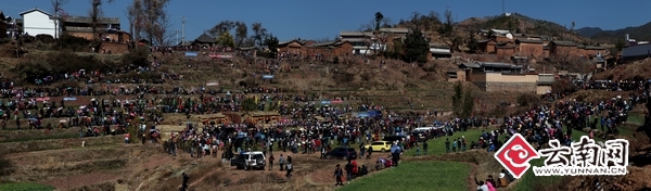 云南网2014年2月9讯(记者 杨之辉 通讯员 王自林 赵功修)日前,云南省祥云县隆重举办大营彝族文化哑巴节。3万多各族群众相聚禾甸镇大营村委会七宣村,欣赏精采的原生态“哑巴舞”,品味民族文化大餐,共庆新春欢乐吉祥。