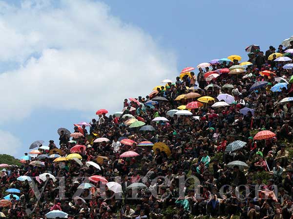 第二日白天,火把场上要进行赛马、斗牛、摔跤等民族活动。
