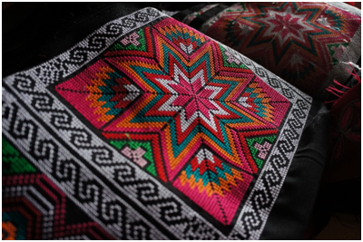 彝族刺绣图案富有不同的内涵,撒尼的文化便蕴藏其中。如图中的刺绣图案,名为“太阳花”,在彝族中象征着忠诚,热情,好客。体现出彝族人民对生活的热情和对美好未来的向往。