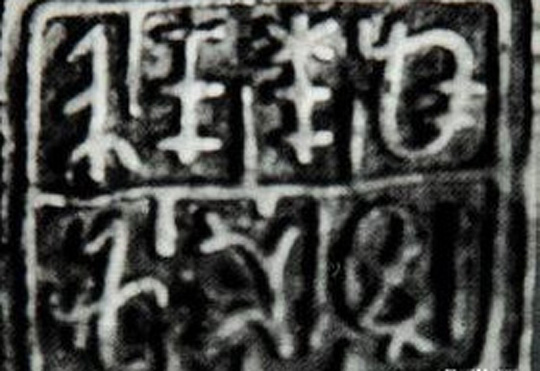 出土于云南昭通,是最古老的铜质彝文印章。阴印阳文,有青蛙形印钮,刻有“螳螂山长官手印”七个彝文字。