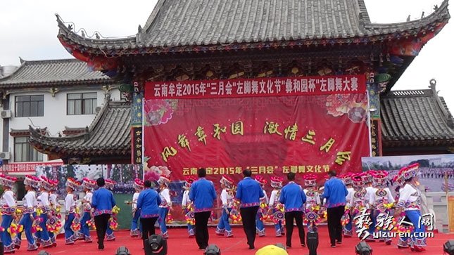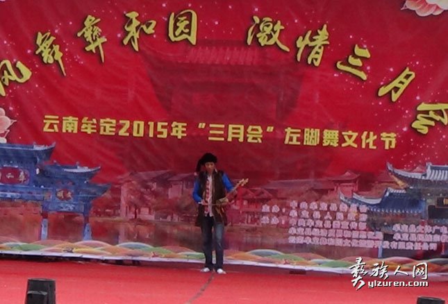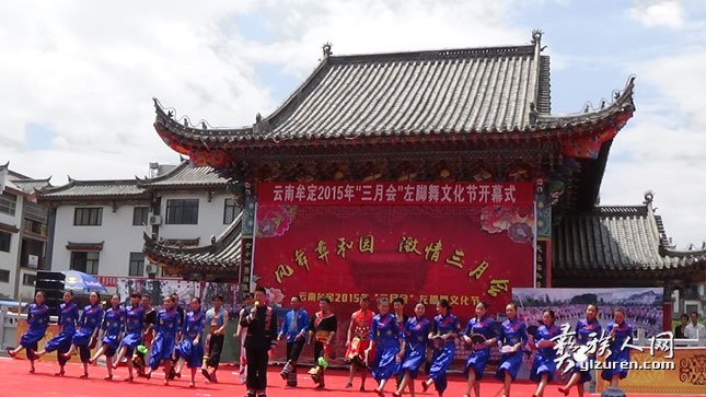 ③牟定隶属楚雄彝族自治州.据清康熙《定远县志》记载:“每逢农历三月二十八(牟定三月会),彝族赴城南东岳宫(庙) 赶会,至晚, 男女百余人葫芦笙弹月琴、吹口弦、唱夷曲、环围跺左脚,以手脚之俯仰合曲谱之抑扬,盖以左脚先起之故也”.据相关专家介绍,牟定左脚舞是楚雄州唯一有史籍记载的彝族歌舞舞种.