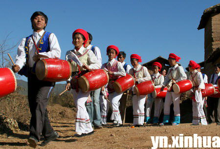 秧佬鼓在滇中有着悠久的历史,它是明代从中原流传到滇中,与滇中彝族文化相融合、渗透,逐步形成的一种民族民间广场舞蹈。在每年“开秧门”的时候,民间都要组织挑秧苗的青壮年男子(即秧佬),跳鼓祈求神保佑稻谷丰收,秧佬鼓由此而得名。秧佬鼓的外形与中原的腰鼓基本相同,表演套路较为复杂,舞蹈的动作,几乎都发自于腰胯和腿部有力而巧妙的运动。晋宁的秧佬鼓队发展到现今有200余支,队员约3000余人,呈现出“百花齐放”的可喜局面。在纪念郑和下西洋587周年晋宁分会场开幕式的大型文艺展演、C·I·O·F(西奥夫)第29届世界年会暨第6届亚洲民间艺术节巡演等活动中,均有晋宁秧佬鼓的精彩表演。特别是在2001年6月,晋宁秧佬鼓代表团赴北京参加了“山花奖·居庸关长城杯”中华鼓舞大赛,荣获金奖。秧佬鼓从乡村的土台子登上了大雅之堂,并荣获国家级金奖,被誉为“金牌秧佬鼓”。