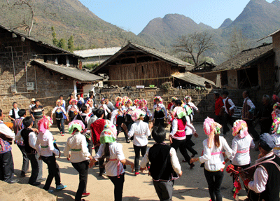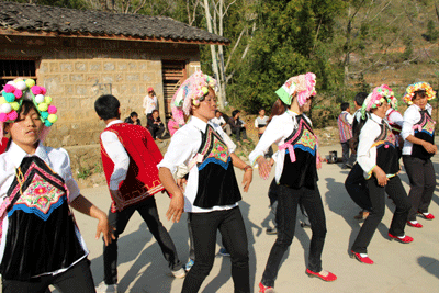 据悉,冷泉镇是我市以彝族为主的山区大镇,有着悠久而多姿多彩的民族民间传统文化。冷泉有一句俗语:“听见弦子响,心慌手掌脚杆痒”。三步弦是蒙自冷泉山区彝族姆基支系喜爱的传统舞蹈,冷泉的姆基人,无论男女老小,人人会跳三步弦,代代相传,学三步弦一般无需专门拜师学艺,小孩从学会走路就开始摹仿,在大人的指点下逐渐熟练,长大后就能学到三步弦的基本动作,三步弦的动作主要有走弦、簸箕弦老牛擦背、猴子望月等数十种。“三步弦”也称“三步乐”,不受时间、地点、人数的限制,只要高兴、只要喜欢,随时随地都可以舞蹈,“三步弦”的音乐是用地方民间乐器三弦或四弦来伴奏的,小三弦是太阳琴 ,四弦是月亮琴 ,男人是太阳,女人是月亮,传说这是玉皇大帝安排的阴阳调和。