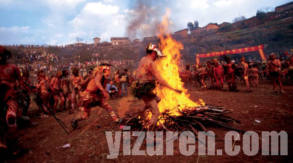 每年农历二月初三是个极其普通的日子,但这个日子,对于生活在云南省弥勒县西一镇红万村的彝族阿细人来说又是个盼望已久、喜庆狂欢的一天,因为每年的农历二月初三这天,他们都要绘身、化装、送旧火、迎新火、吃长街宴、举行盛大的祭火送火游行。