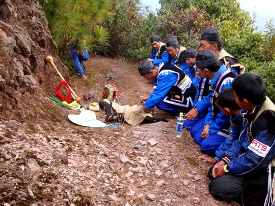 客观的生地和社会环境使后山腊罗伯萌生了浓厚的“祖荫”意识。和其他频繁迁流的民族一样,迁徙异地的腊罗伯,在因人地关系发生矛盾冲突的情况下,由于人口数量并不占优势,他们在抗争过程中只能选择避让,向不被当地民族乐居的僻野立足。再加上缺失适应和征服地域环境的生活技能,腊罗先民便开始把生活期望(丰收、添丁等)寄托于“灵验”和可以“庇护”的神灵身上。虽受汉文化影响,后山腊罗伯供奉有南诏十三代王、古代汉族文人、家祖等许多神像,但土主是腊罗伯最为特有的信仰对象。